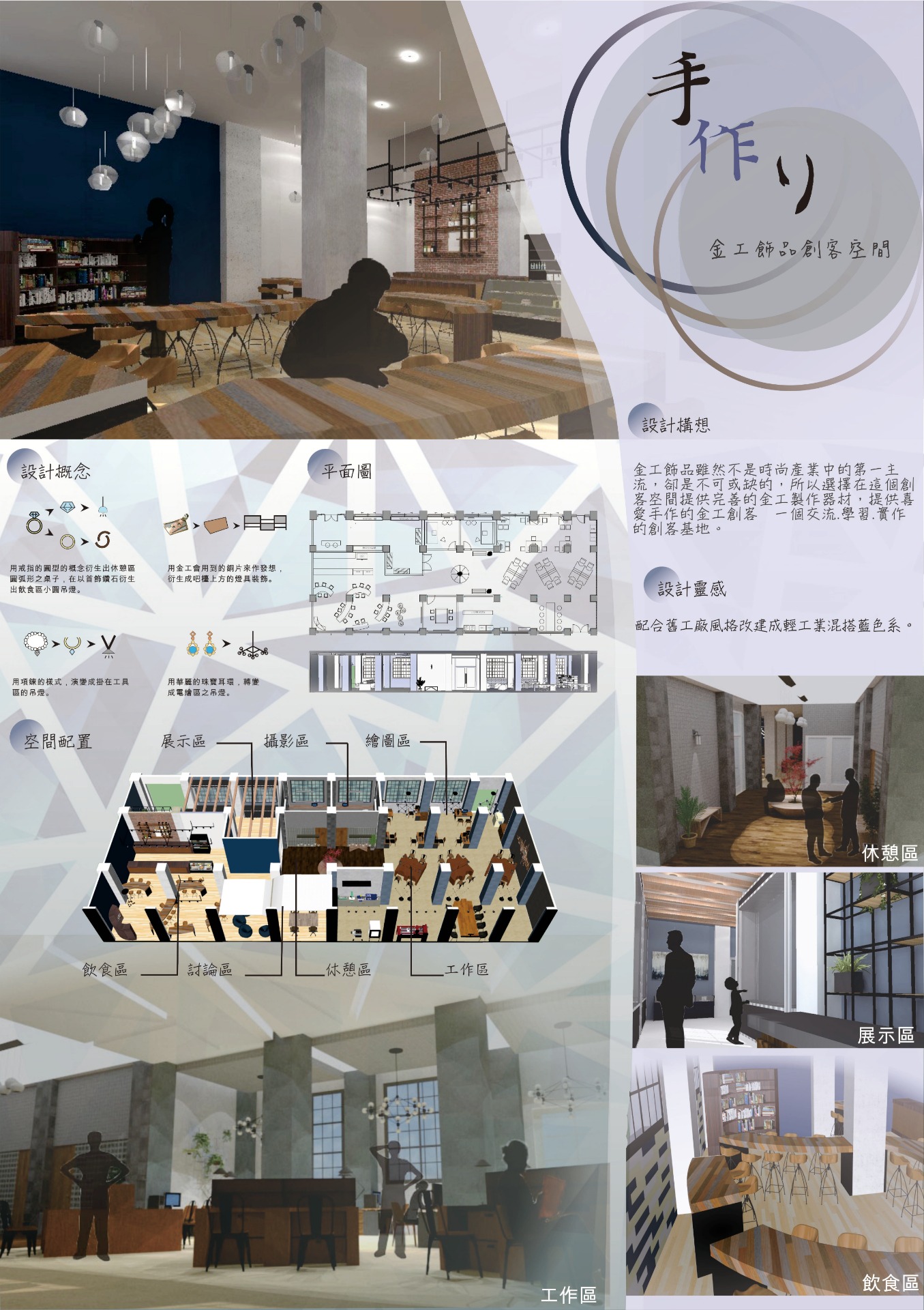 比賽的過程比照正式的提案過程,繪製平面圖導入3D建模、渲染使用PS輔助,最後製作完整海報。